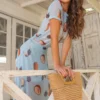 Lavar a mano con jabón suave; evitar el uso de blanqueadores, secadora o plancha. No escurrir, y evite planchar sobre detalles hechos a mano o estampados. HECHO EN COLOMBIA