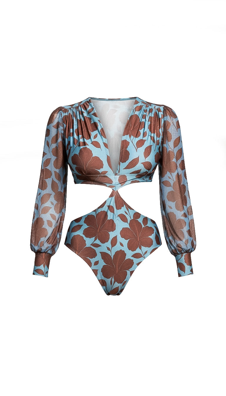 Este es un enterizo de vestido de baño con un diseño practico, El escote es profundo en “V” y se une en el centro con un nudo que deja un coqueto cut-out en la zona del abdomen, aportando sensualidad y frescura. Las mangas largas transparentes le añaden un toque chic y de protección ligera frente al sol, manteniendo el estilo sofisticado. Se complementa con otra prenda y queda ideal para salir.